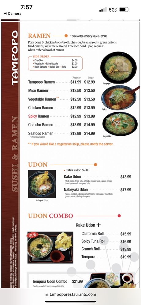 Tampopo Restaurant, located in Gardena, CA, offers a diverse menu of delicious ramen and sushi options. With vegan and vegetarian choices, it caters to a variety of dietary preferences. The restaurant provides delivery, takeout, and reservation options, making it convenient for all diners. The cozy ambiance and attentive service create a pleasant dining experience. Customers rave about the fresh sushi, flavorful hot rolls, and unique dishes like the Japanese burrito. The 50% off sushi deal is a highlight, offering great value for money. Whether you're in the mood for traditional sushi or innovative dishes, Tampopo has something for everyone. Don't miss out on this hidden gem for a satisfying and affordable meal.